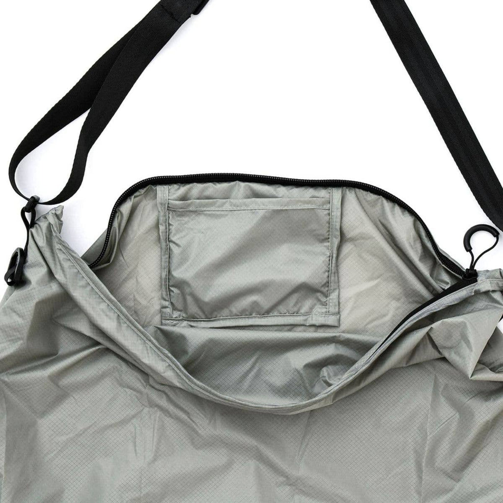 The packable sacoche bag from nähe can be folded up and carried around. Its size is convenient for daily use and can be used for a wide range of purposes, from walking to hiking to riding a bike. Made of lightweight nylon material that is strong and water-resistant. The opening is equipped with a zipper to prevent items from falling out. It can be folded up compactly for carrying. The storage bag is integrated with the main body, so there is no need to worry about losing it. Connect a carabiner to the D-ring to wear it folded or hang it on a hook when storing.