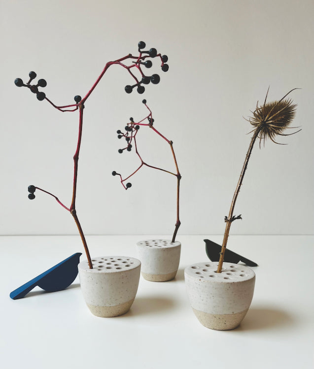 Designed for simple botanical compositions, this thoughtful design blends traditional ikebana function with modern minimalism.  It brings calm, balance, and sculptural beauty to any space.