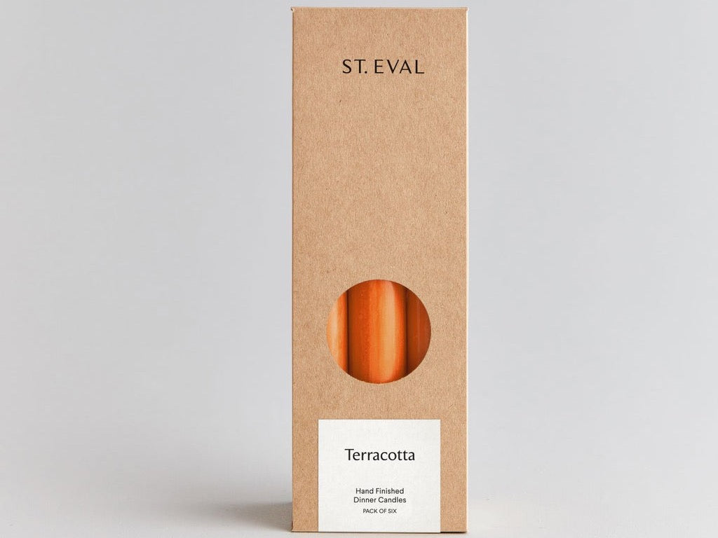 Add a splash of colour to your home. These soft pale terracotta coloured dinner candles would bring a flash of colour to any dining table. St Eval's dinner candles are still hand drawn in the traditional way and hand wrapped for the ultimate luxurious gift. Each candle can burn for up to 10 hours.